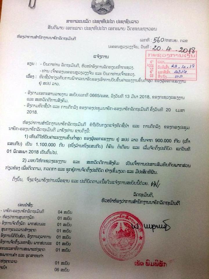 ການປັບຂື້ນຄ່າແຮງງານຂັ້ນຕ່ຳສຸດ 2018